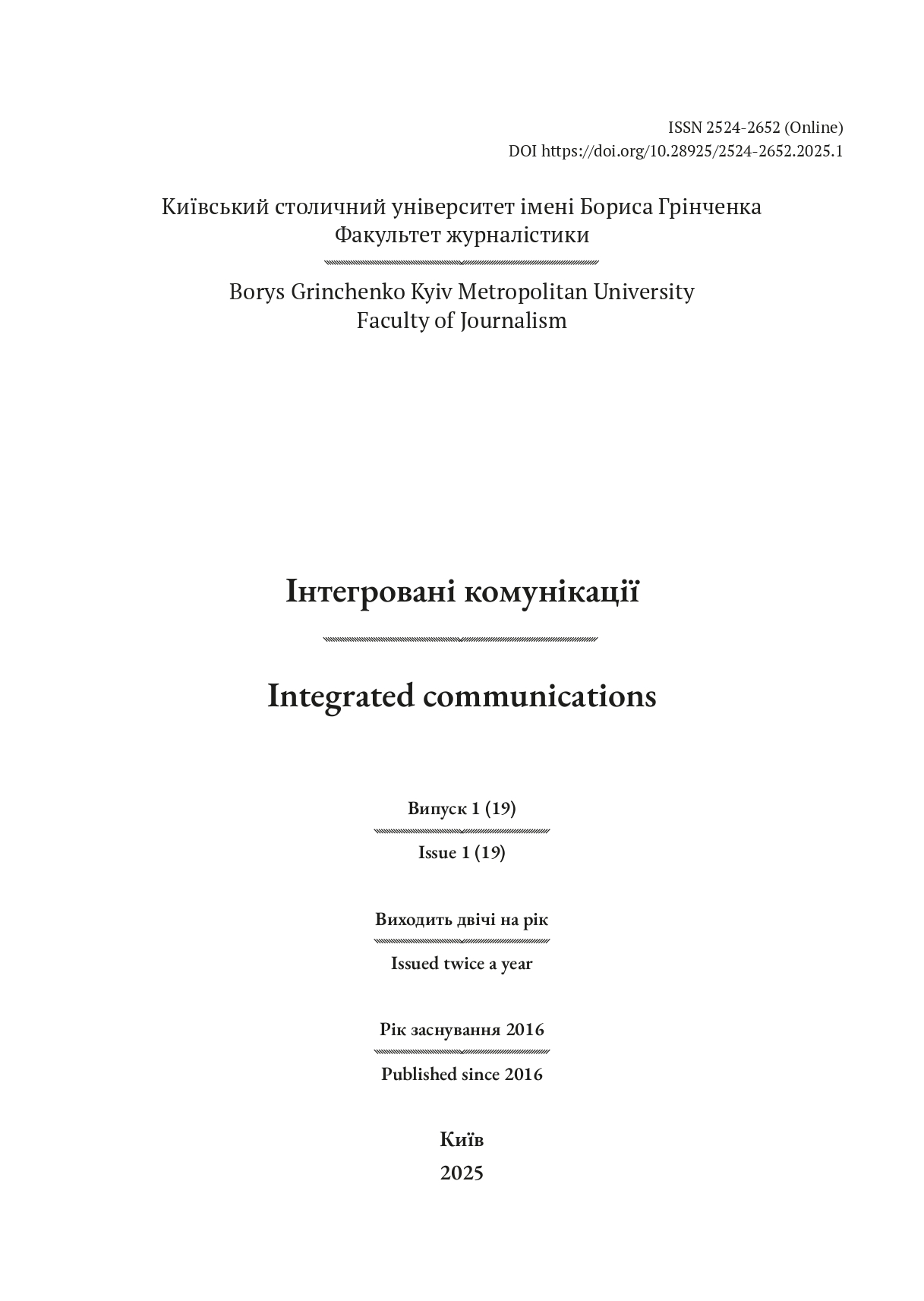 No. 1 (13) (2022)«Integrated Сommunications» – academic journal of the Institute of Journalism of Borys Grinchenko Kyiv University.