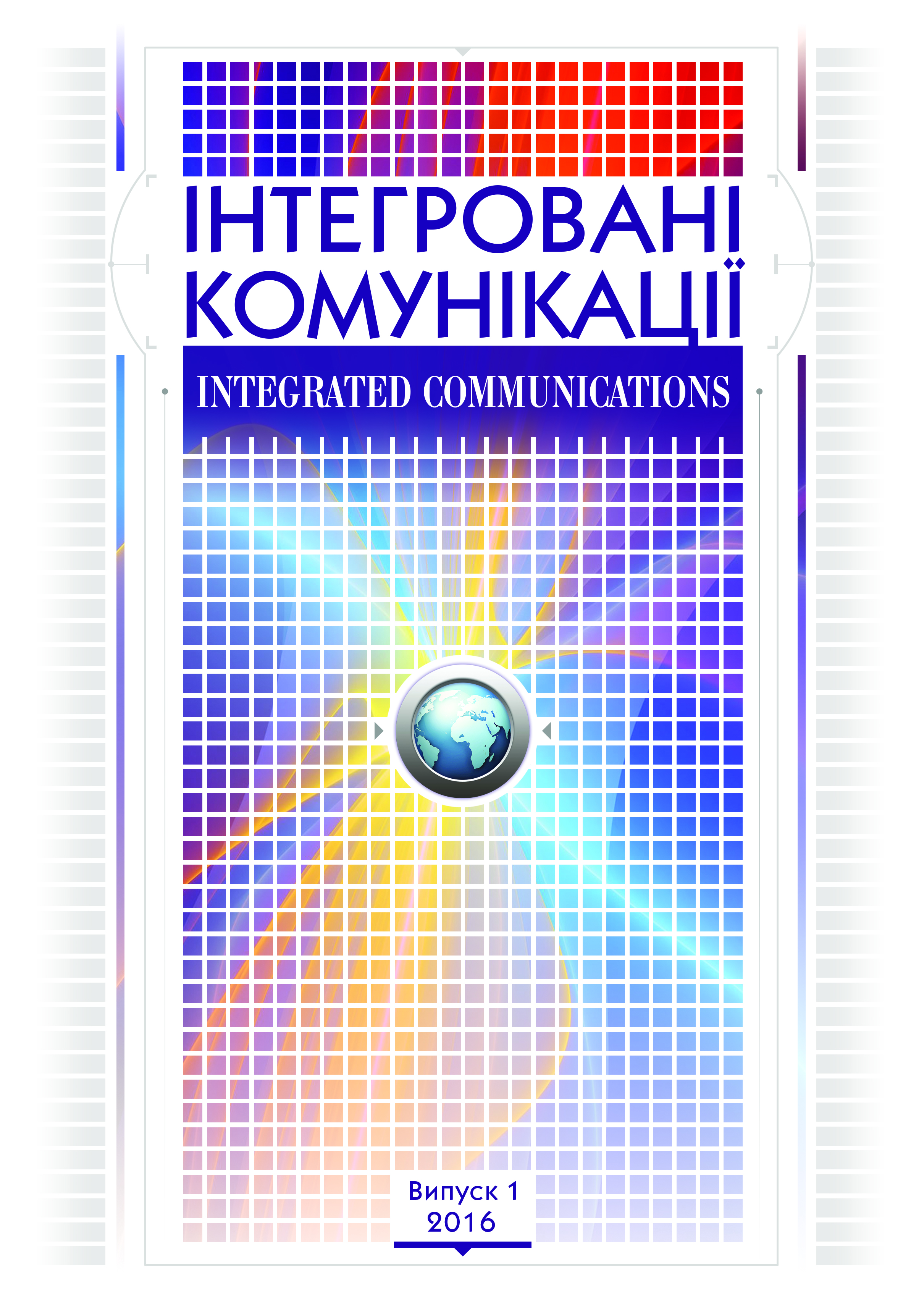 No. 2 (2016)«Integrated communications» is a newly created academic journal of the Institute of Journalism of Borys Grinchenko Kyiv University. The original articles and reports related to researches in the sphere of journalism, theory and history of social communications, applied social communication